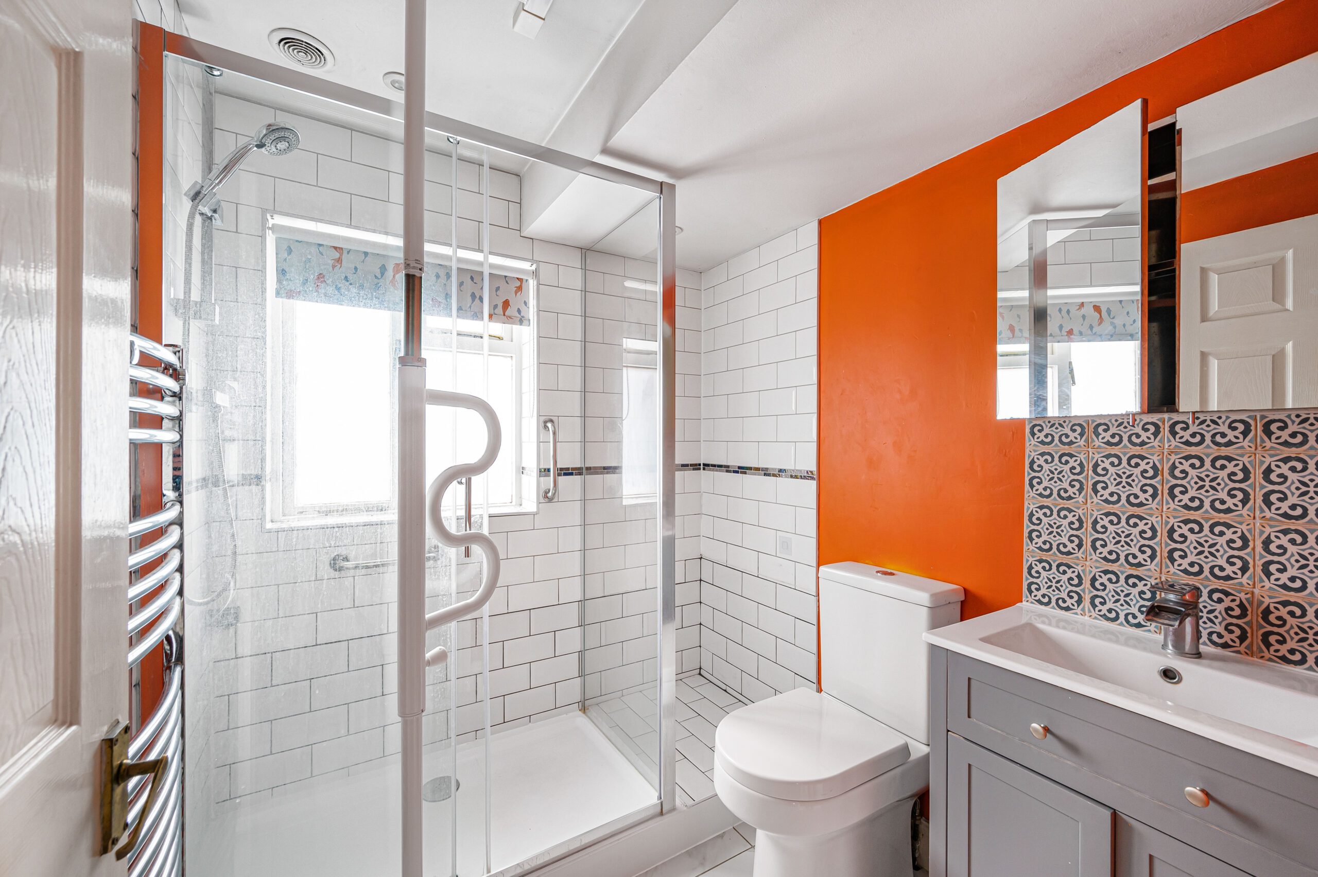 Upstairs there are two good size bedrooms, one to the front overlooking the village,The bathroom is modern and bright with a white suite, grey vanity unit with sunk in basin and tiled finish.