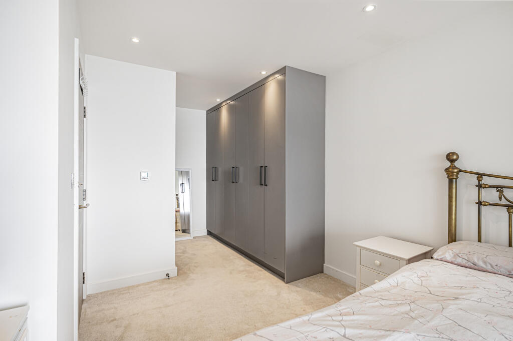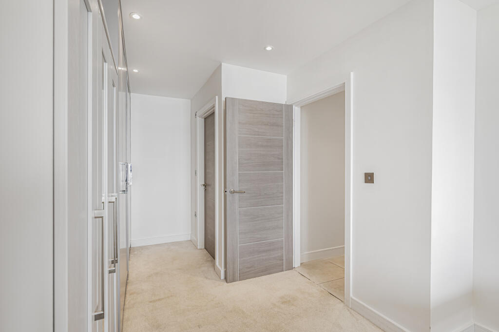 Electronic security gate opens into the driveway parking area including 2 visitor spaces and leading to the private garage. There is a gated pedestrian entrance next to the communal front garden and this leads on to the main front door, with video entry system, opening into the carpeted wide entrance with passenger lift and stairway to the second floor level. On the entry level is a personal storage cupboard and a secure cycle store.