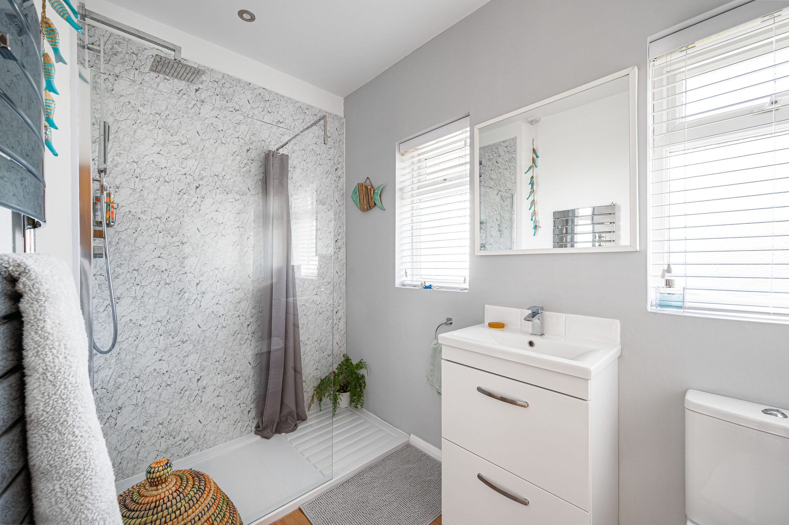 Off the hallway you will find the newly fitted SHOWER ROOM with rainfall shower head, washbasin in vanity unit, wc suite and towel rail.