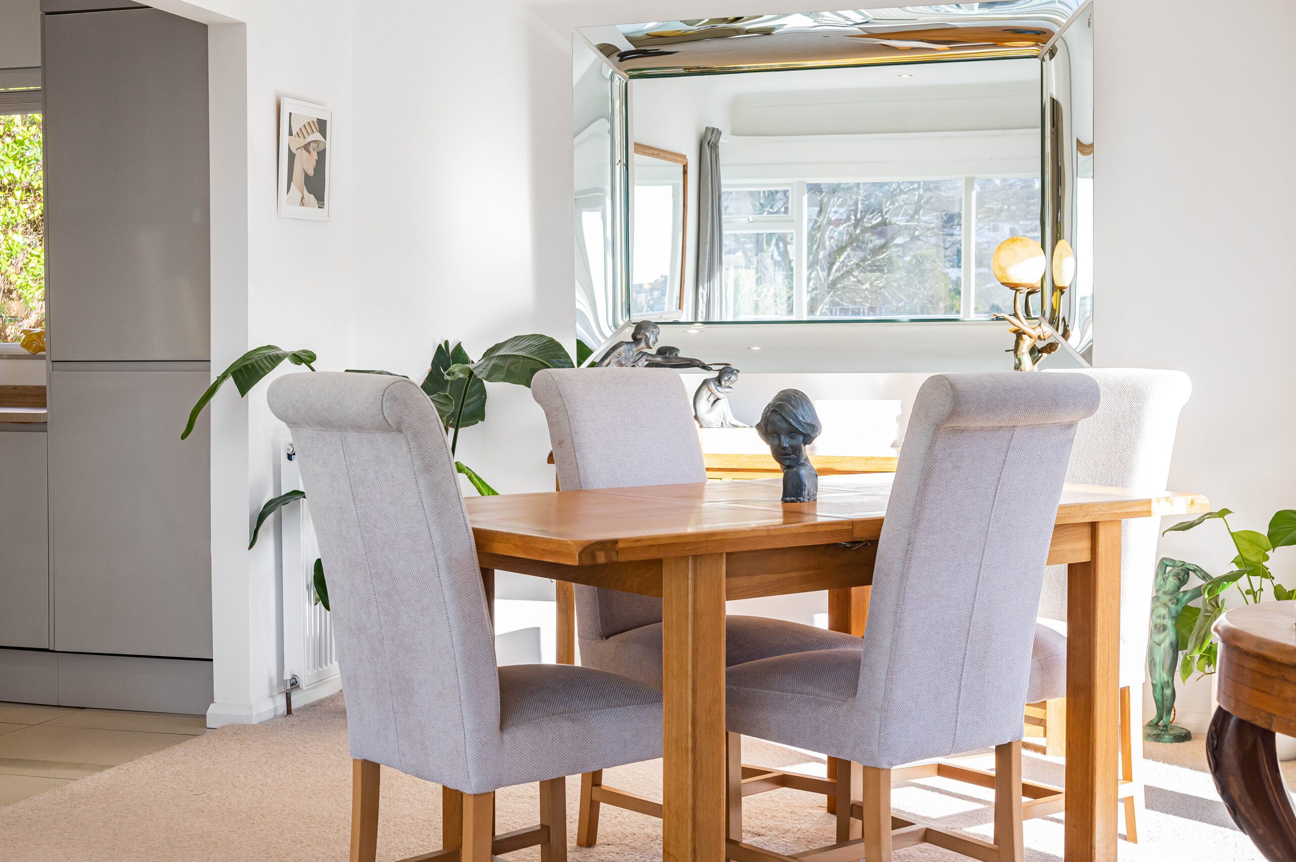 The property is approached by a brick paved driveway which gives access to the double garage. A few steps up lead to the front garden. The property is in pristine decorative condition and features newly fitted light oak internal doors and solid wood flooring.