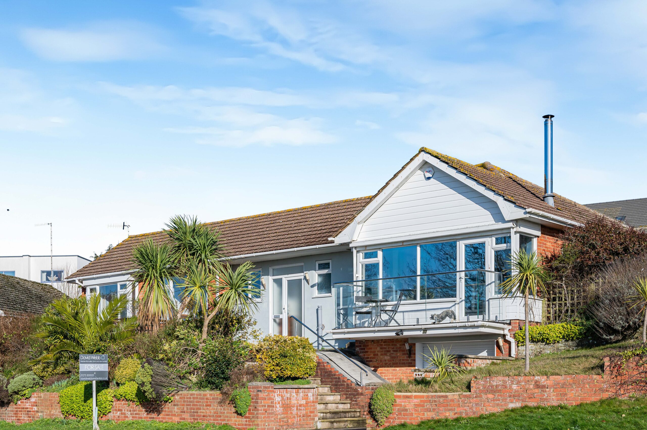 David Webb Residential is delighted to offer this beautifully presented three bedroom two bathroom detached bungalow on a large corner plot in a sought-after elevated position with superb southerly views to the sea, and being perfectly situated for all local amenities and offered for sale with no onward chain.