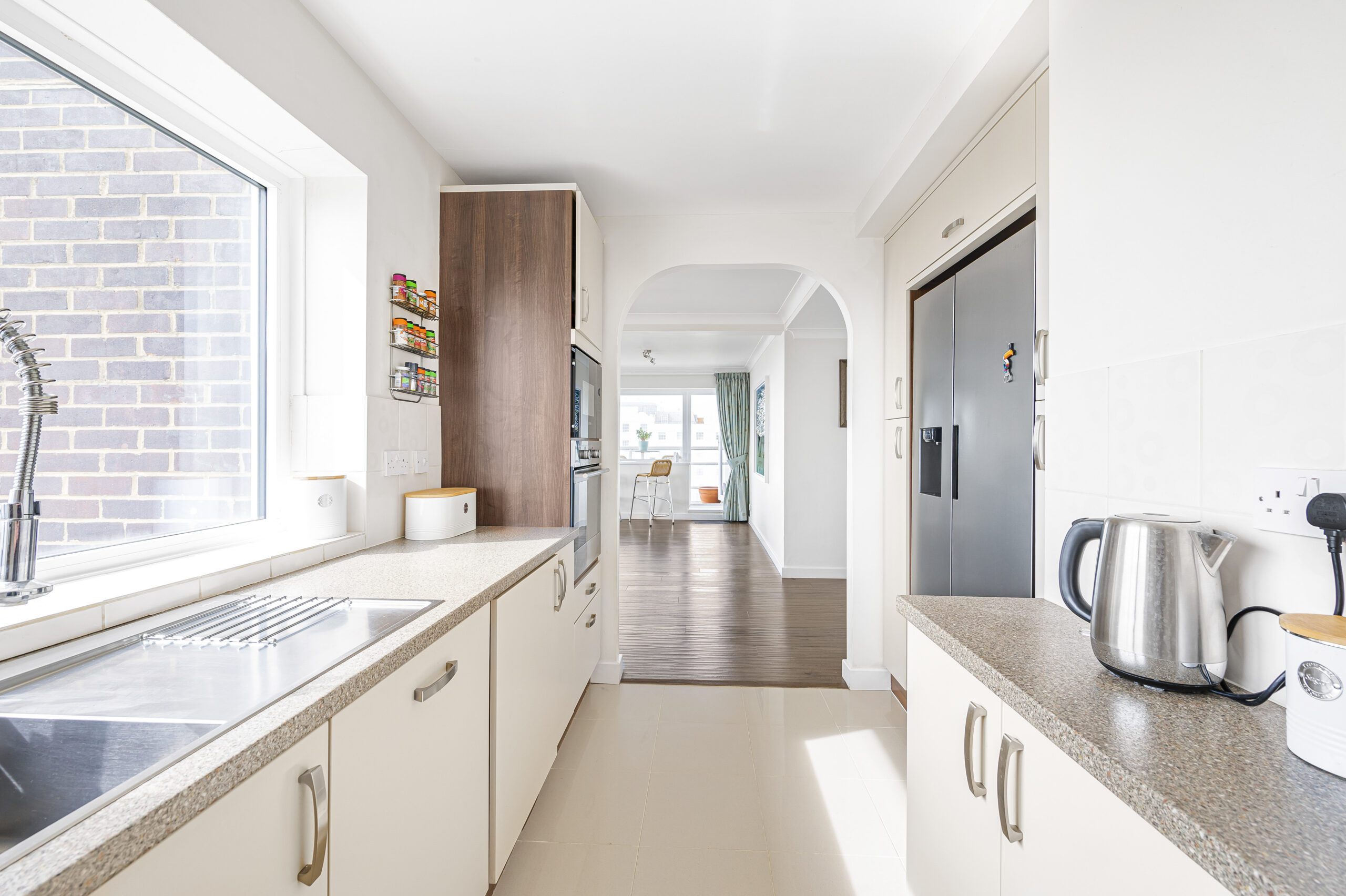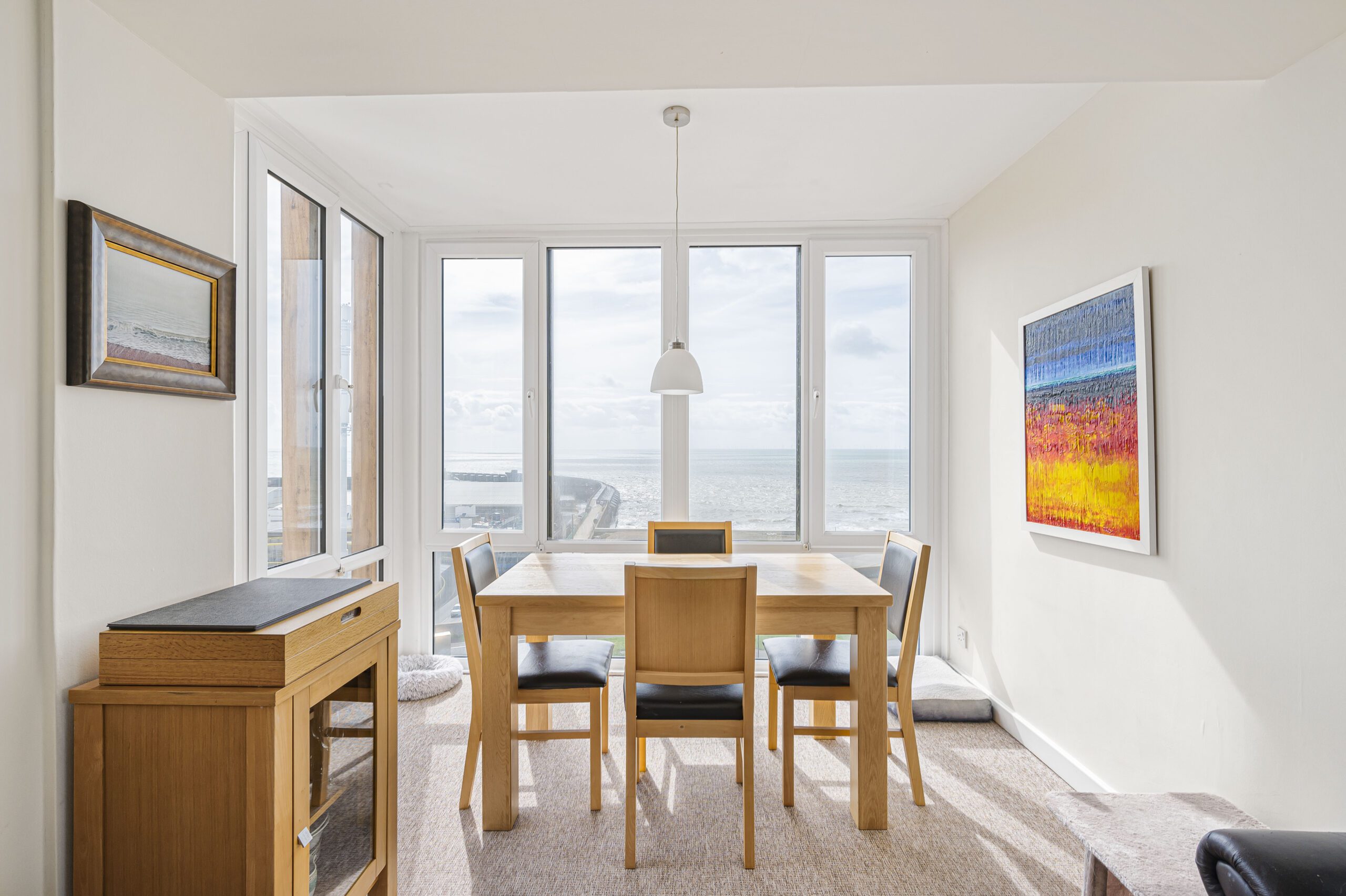 The fabulous open plan Lounge/Dining room has all the light and sea views you would hope for being South facing with the balcony. The hallway features lots of storage.