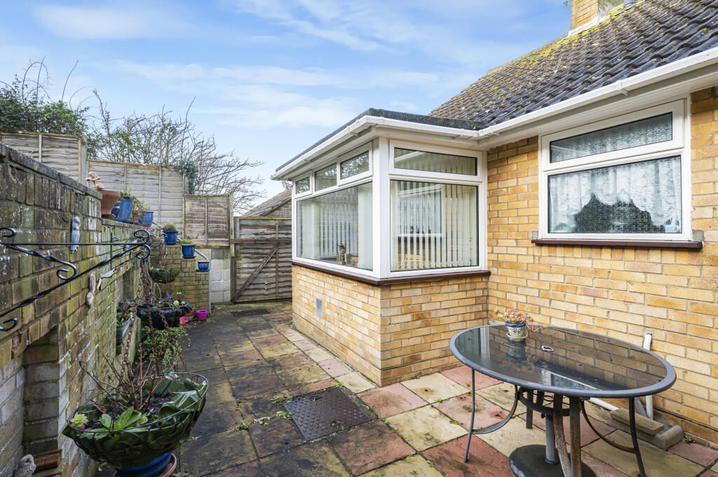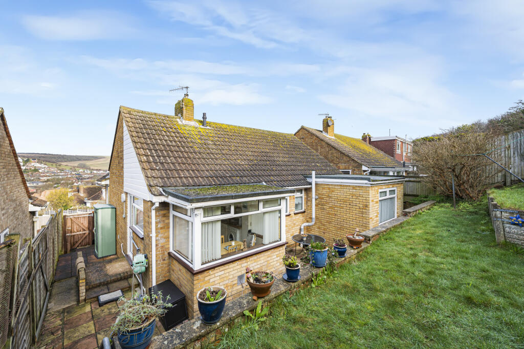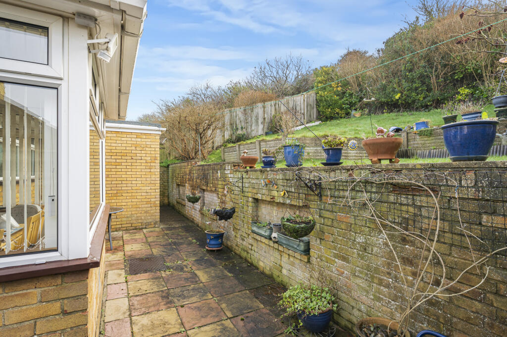 Rear Garden with access from the front of the property on both sides. Paved Patio accessed from the kitchen door. good size garden with grass areas on two levels with flower borders and local amenities are all within easy reach, there is Lustrells Vale and Longridge Avenue each with convenience stores, pharmacy and a variety of shops, cafes and restaurants. Saltdean junior/primary school is located in Chiltington Way.
