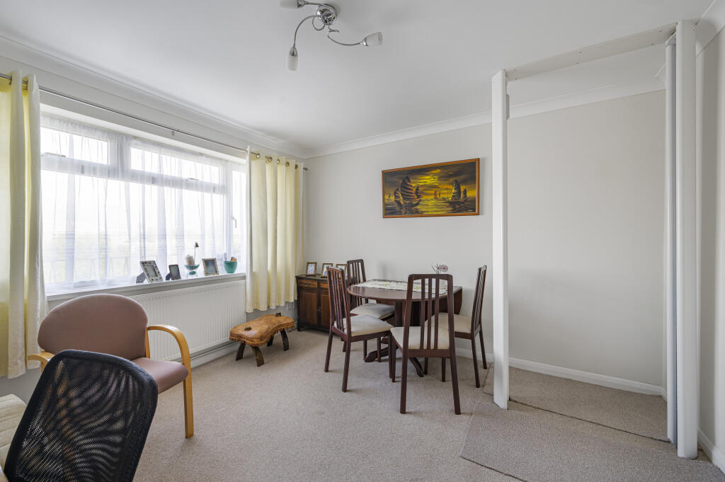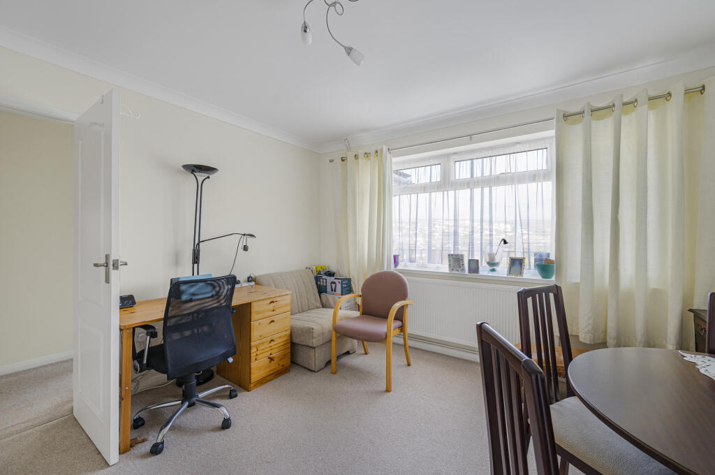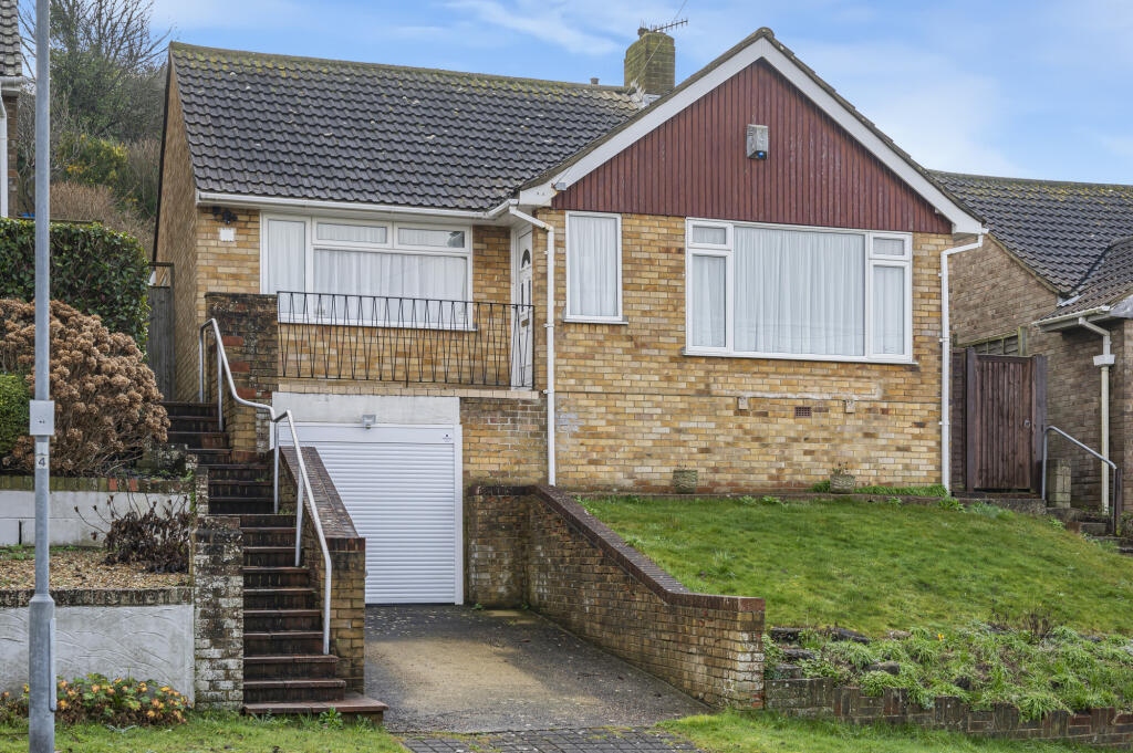 From the pavement there is the front garden laid to grass and with the driveway adjacent. Steps lead up to the front balcony and main entrance door. Entrance Lobby opening into the Entrance Hall with fitted cupboard. Lounge 15ft2 x 11ft11 (4.62m x 3.63m) with a lovely view over West Saltdean to the South Downs beyond.