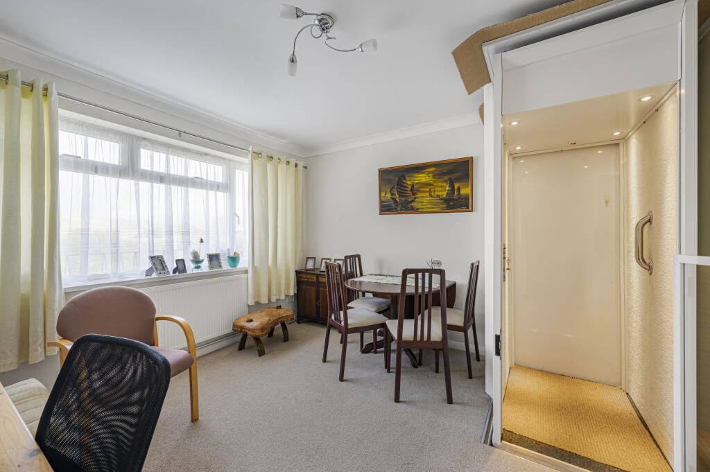 The property currently features an internal lift for those who find steps difficult to negotiate. At driveway level the electrically operated roller shutter door give pedestrian access through the garage store then to the lift area. The lift currently opens into the second bedroom presently used as a dining room/study. It should be noted that the lift could be removed by negotiation if required.